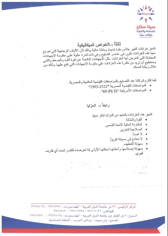 كل انواع الخزانات موجودة عند الشركة دي البولي ايثيلين و الاستانلس ستيل و الفايبر جلاس